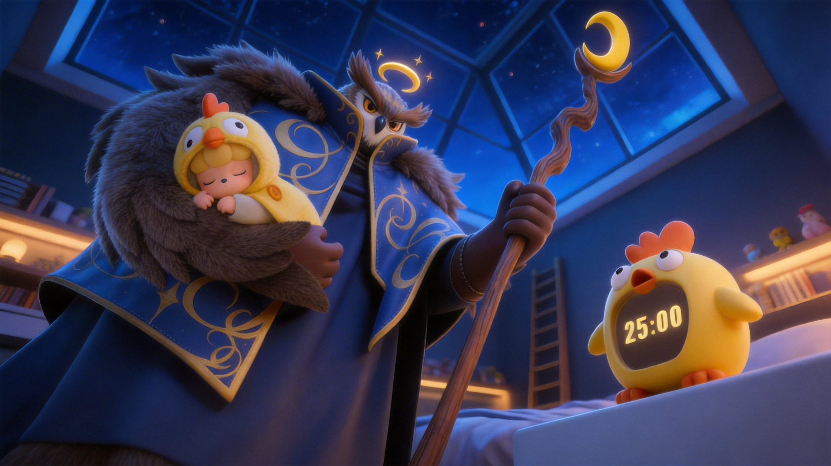 Laid-back Zoomi was just about to live his ultimate fan dream – snapping a pic and getting an autograph from his idol, the Owl-shaped Sleep God Hypnos, in his dream! But that noisy little chick alarm clock at home kept crashing the moment, yanking Zoomi back to reality again and again.Just as Zoomi was about to lose it, Hypnos stepped in to set things straight! Faced with the Sleep God’s gaze, the alarm clock immediately backed down, apologized, and quickly set the next wake-up time to 25:00.So rest easy. In Zoomi’s world, the alarm will never ring. Sink into this extra hour of total silence, and meet the ones you’ve been waiting for.